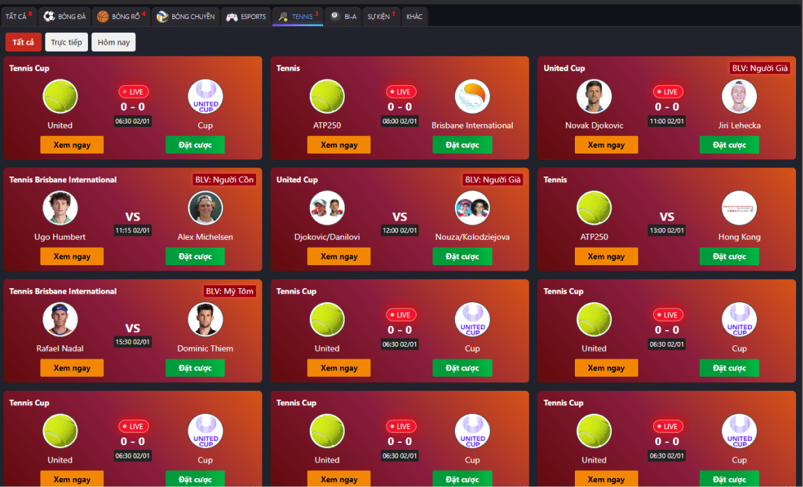Xem THAPCAMTV Trực Tiếp Tennis Online